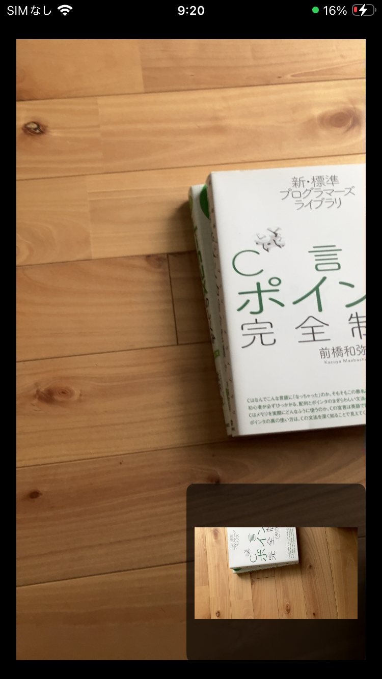 一番大きく出ている画像がAVCaptureVideoPreviewLayerで表示した映像になります。